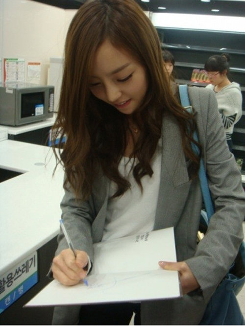 5일 한 포털 사이트 게시판에 '학교 매점에 사인 해주는 착한 하라'라는 글과 함께 여대생 구하라의 사진이 게재됐다.