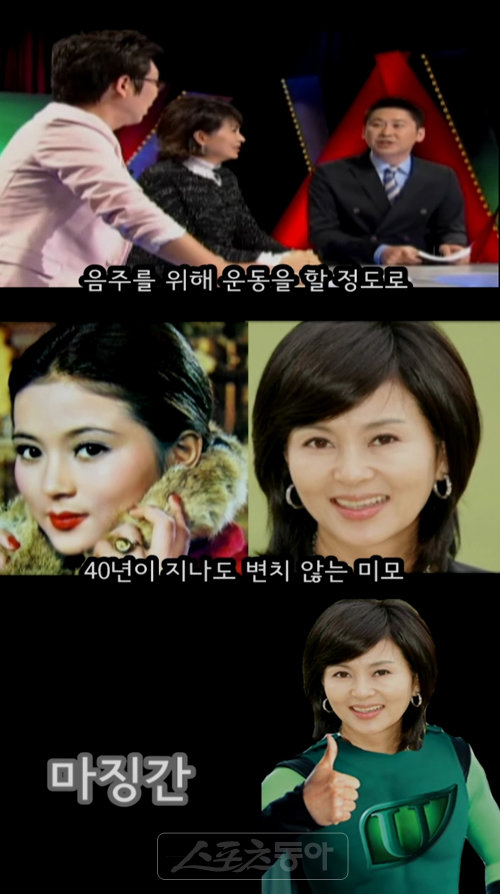 이에 대해 패널들은 “이렇게 술을 사랑하는데 명품 피부와 외모를 지니고 있는 게 대단하다”며 “간이 ‘마징간’(마징가 간)인가보다”고 덧붙여 웃음바다를 만들었다.