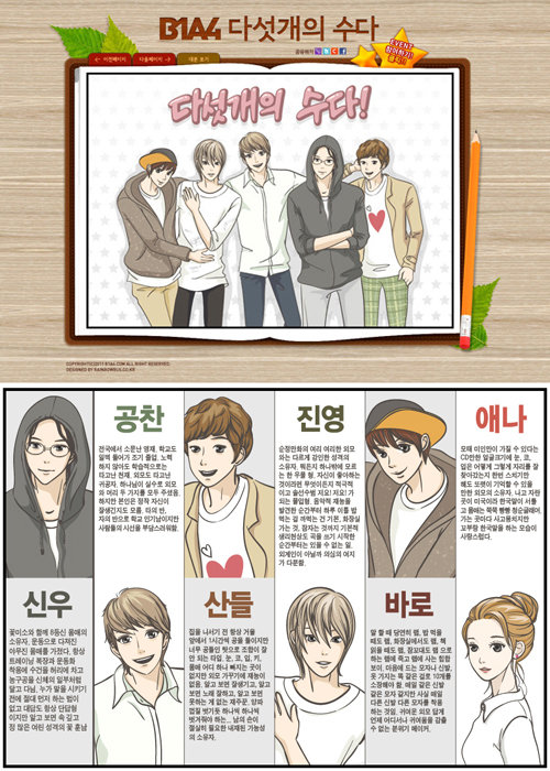 만화 ‘다섯 개의 수다’를 통해 먼저 이름을 알린 남자 아이돌 그룹 ‘B1A4(비원에이포)’가 베일을 벗었다.