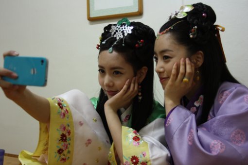 걸그룹 티아라 멤버 은정과 큐리가 현대복을 벗고 KBS1TV 드라마 ‘근초고왕’에서 전통 의상 한복으로 공주 패션을 선보였다.
