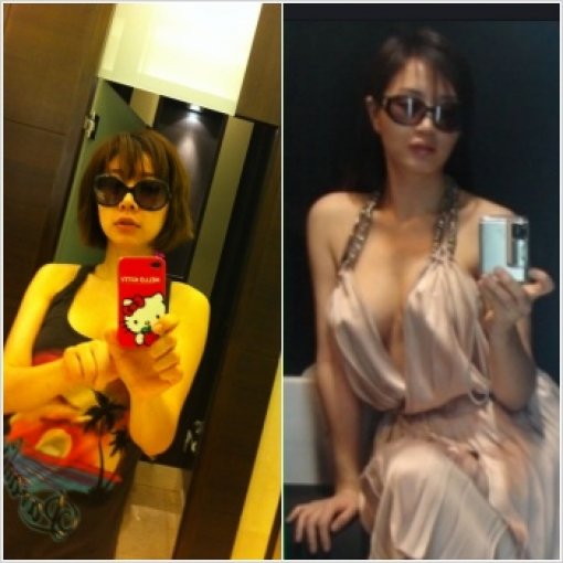 하지만 김혜수의 사진은 풍만한 몸매가 돋보이는 드레스를 입은 화보 촬영 중 찍은 모습인 반면, 곽현화의 사진은 평상복을 입고 일상에서 찍은 사진.