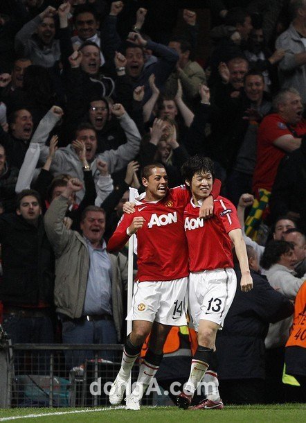 치차리토는 “치차리토와 박지성의 골로 맨유2 대 첼시1로 승리, 우리 잘 뛰었죠?”라는 글을 올리고 이어 박지성과 함께 찍은 사진을 올렸다.