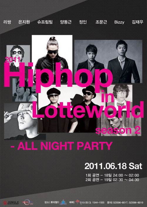 이들과 함께 비지, 정인, 조문근, 나몰라패밀리의 김재우 등이 6월 18일 자정, 6월 19일 오전 2시 두 차례에 걸쳐 서울 잠실동 롯데월드 가든스테이지 특설무대에서 ‘힙합 인 롯데월드 시즌2-올 나잇 파티’라는 이름으로 힙합 공연을 벌인다.