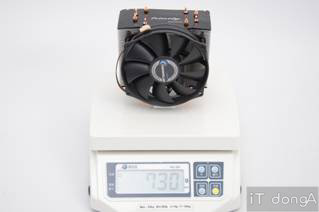 크기에 비해 무게는 730g으로 상당히 가볍다. 메인보드에 장착 시 네 개의 지지대가 쿨러를 단단하게 지탱해준다. 요즘 대부분의 컴퓨터가 세워두는(타워형) 형태이기 때문에 쿨러는 지면과 직각으로 매달려 있어야 한다. 따라서 무게가 가벼워야 장시간 안정적으로 사용할 수 있을 것이다.
