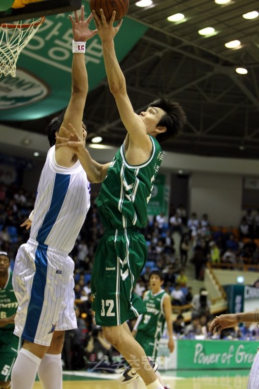 3차전에서 상대 센터 하승진(왼쪽)의 수비를 제치고 레이업슛을 시도하고 있다.원주 | 박화용 기자 (트위터 @seven7sola) inphoto@donga.com