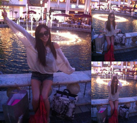 가수 지나가 29일 자신의 트위터(@G_NA_love)에 늘씬한 몸매를 과시한 사진을 공개했다. 지나는 이날 “이제 밥 다 먹어가요. 배가 불러서 이제 슬슬 졸리네요”라는 글과 함께 세 장의 사진을 올렸다. 사진 속 지나는 분수대에 걸터앉아 환한 표정으로 카메라를 응시하고 있다. 쇼핑을 즐긴 듯 주변에는 쇼핑백이 놓여 있다. 길고 가는 다리와 함께 헐렁한 상의에도 확연하게 드러나는 건강한 몸매가 눈길을 끈다. 지나는 28일 미국 LA에서 열리는 공연을 위해 출국했다.