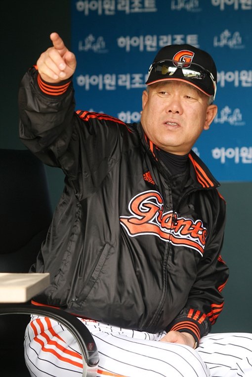 8일 서울 잠실야구장에서 열린 '2011 프로야구' 롯데 자이언츠와 두산 베어스의 경기 전에 롯데 양승호 감독이 취재진과 담소를 나누고 있다.