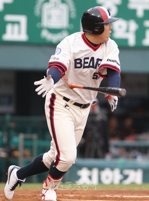 8일 서울 잠실야구장에서 열린 '2011 프로야구' 롯데 자이언츠와 두산 베어스의 경기에서 6회말 두산공격 무사 무주자상황에서 김현수가 좌중간 2루타를 날리고 있다.