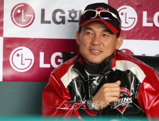 12일 서울 잠실야구장에서 열린 '2011 프로야구' 한화 이글스와 LG 트윈스의 경기 전에 LG 박종훈 감독이 그라운드에서 연습중인 선수들을 보고 있다.