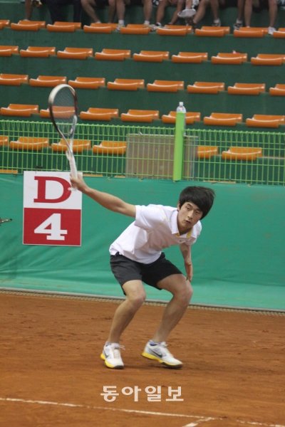 지난해 광저우 아시안게임 금메달리스트인 대구가톨릭대 이요한 선수가 스트로크를 구사하고 있다.