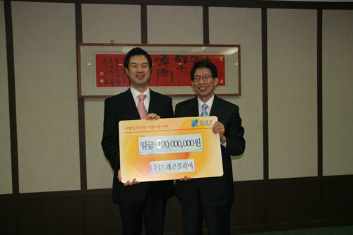 드래곤플라이는 지난 4월 21일 강남구청에서 진행중인 ’저소득층 학비 지원 사업’에 참여해 1억2000만원의 기부금을 전달했다. 이 금액은 올 연말까지 매월 1000만원씩 사회복지공동모금회를 통해 강남구 저소득 청소년에게 지원될 예정이다.