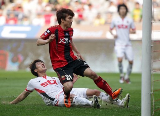 15일 오후 3시 서울월드컵경기장에서 열린 ‘현대오일뱅크 K리그 2011’ FC서울과 경남FC의 경기에서 후반 결승골을 터트린 FC서울의 고요한이 문전에서 한 골 더 추가하고 있다.