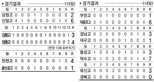 제물포고는 부천고를 6-1, 덕수고는 동성고를 7-3, 유신고는 경북고를 3-0으로 꺾었다.