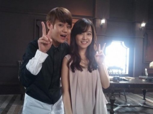 사진 속 양요섭과 박보영은 밝은 표정으로 V자를 그리며 다정한 포즈를 취하고 있다.