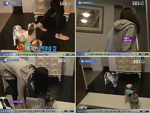 하지만 강아지들은 제작진을 보고 사납게 짖어댔고 김연아는 “애들이 성질이 좀…”이라며 강아지들을 달랬다. 또한 “애들이 좀 불친절하다”며 농담섞인 설명을 덧붙였다.