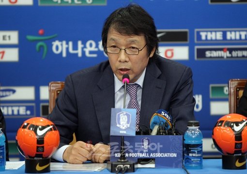 조광래 축구대표팀 감독이 23일 오전 10시 서울 종로구 신문로 축구회관에서 다음 달 열리는 세르비아, 가나와의 A매치에 출전할 국가대표 소집 명단을 발표한 후 최근 선수 차출과 관련한 기술위원회와의 갈등과 관련해 성명을 발표하고 있다.