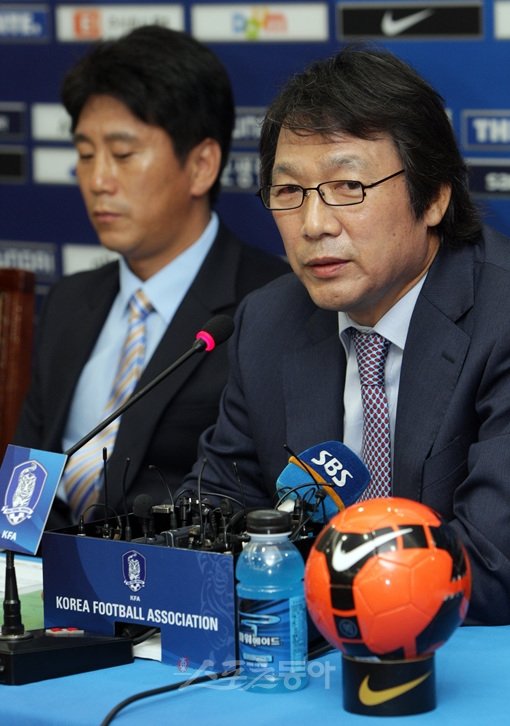 조광래 축구대표팀 감독이 23일 오전 10시 서울 종로구 신문로 축구회관에서 다음 달 열리는 세르비아, 가나와의 A매치에 출전할 국가대표 소집 명단을 발표한 후 최근 선수 차출과 관련한 기술위원회와의 갈등과 관련해 성명을 발표하고 있다.