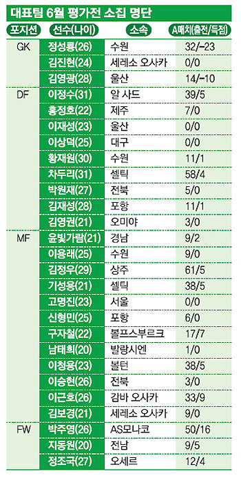 조 감독은 6월 예정된 2차례 평가전(3일 세르비아, 7일 가나)에 나설 27명의 태극전사 명단을 확정해 23일 발표했다.