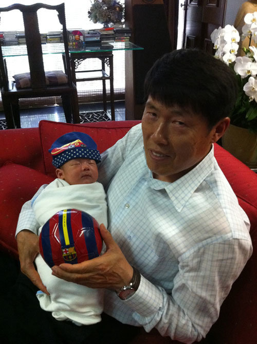 사진과 함께 ‘아직 이름이 없는 우리 둘째가 조리원에서 나와 처음으로 할아버지 집에 놀러 왔다. 바로 바르샤 우승 인증샷’이라는 글을 올렸다.