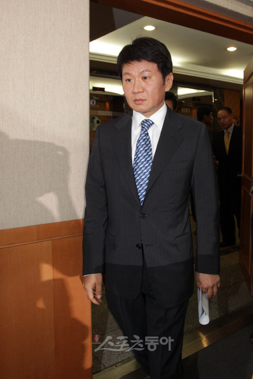 정몽규 한국프로축구연맹 총재가 30일 오후 2시 서울 신문로 축구회관 대회의실에서 K리그 승부조작 파문과 관련해 기자회견을 가졌다. 정몽규 총재가 회견장으로 들어서고 있다.