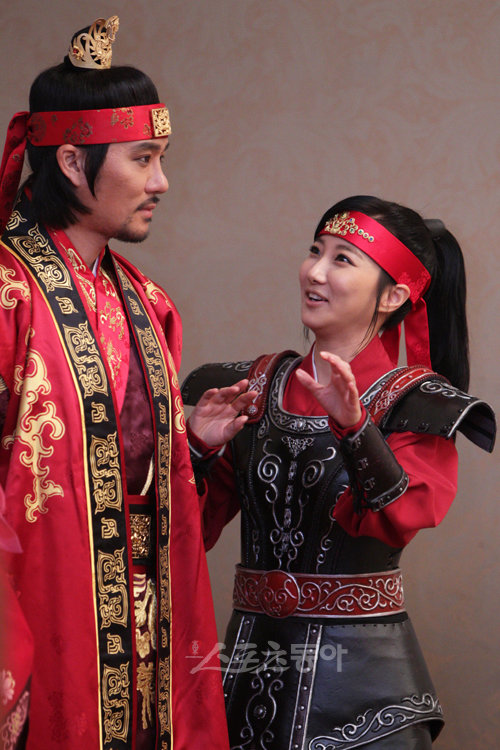 연기자 이태곤(왼쪽)과 이인혜가 1일 오후 2시 서울 마포구 도화동 서울가든호텔에서 열린 KBS 대하드라마 ‘광개토태왕’의 제작발표회에서 담소를 나누고 있다.