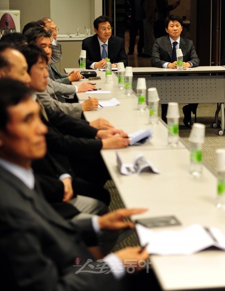 프로연맹과 구단이 승부조작 루머에 연관된 선수를 자체조사 해야 한다는 지적이 높다. 5월 31일 K리그 16개 구단 선수단, 관계자가 참여한 K리그 워크숍에서 있었던 사·단장 간담회 모습.