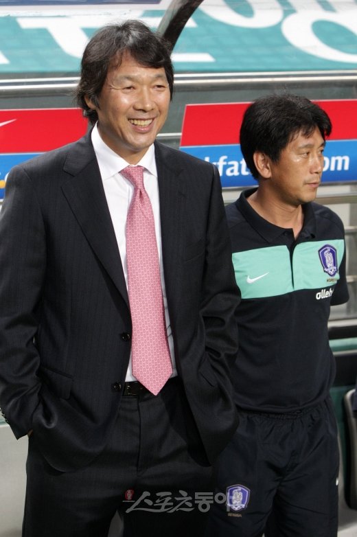 3일 오후 8시 서울월드컵경기장에서 열린 한국 축구대표팀과 세르비아의 평가전 경기에 앞서 조광래 감독이 그라운드에 나와 환하게 웃고 있다. 상암 | 임진환 기자 (트위터 @binyfafa) photolim@donga.com