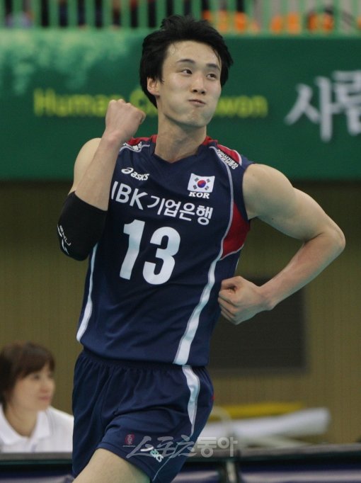 5일 오후 2시 수원 실내체육관에서 열린 ‘2011월드리그 국제남자배구대회’ 대륙간라운드 D조 4차전 한국 대 프랑스 경기에서 공격에 성공한 최홍석이 기뻐하고 있다.