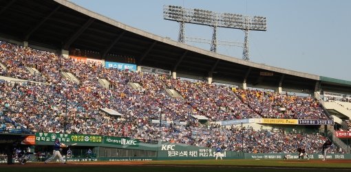 5일 서울 잠실야구장에서 삼성 라이온즈와 두산 베어스의 경기가 만원 관중 속에 열리고 있다.