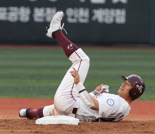 7일 서울 목동야구장에서 열린 SK와 넥센의 경기에서 2회말 넥센 공격 1사 1루 주자 송지만이 장영석의 내야 땅볼 때 포스아웃되고 있다.