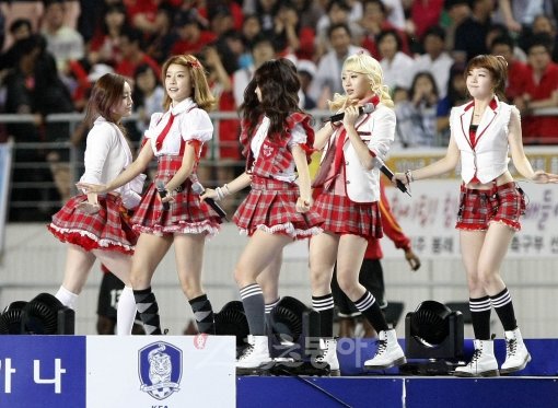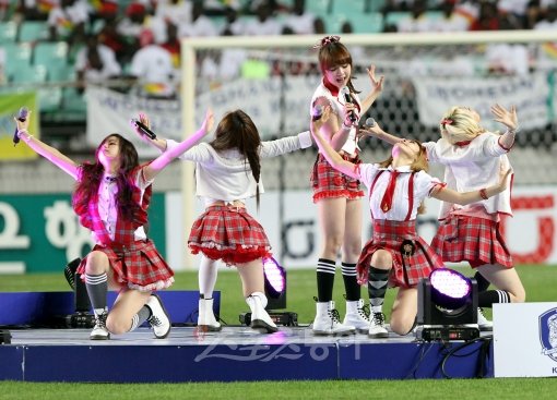 지난 3일 동유럽의 강호 세르비아전을 2-1로 승리한 한국축구대표팀이 7일 전주월드컵경기장에서 국제축구연맹(FIFA) 15위인 아프리카 가나와 평가전을 가졌다. 여성그룹 걸스데이가 하프타임에 축하공연을 하고 있다.