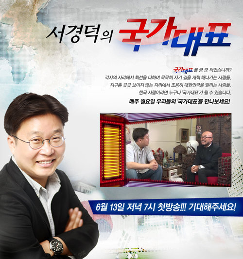 ‘서경덕의 국가대표’는 각자의 분야에서 묵묵히 최선을 다하며 한국의 위상을 높이고 있는 명사들을 만나 인터뷰하는 대담 프로그램.