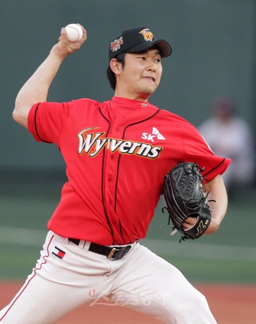 8일 서울 목동야구장에서 열린 ‘2011 롯데카드 프로야구’ 넥센과 SK의 경기에서 SK 선발 송은범이 역투하고 있다.