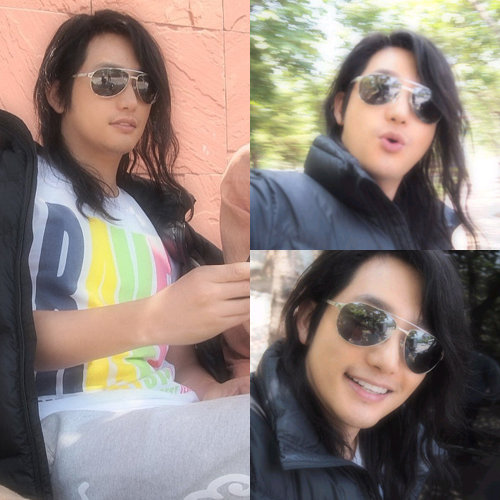 사진 속 박시후는 긴 머리에 보잉 선글라스를 끼고 트레이닝복 바지를 입고 있다. 마치 록 가수의 분위기를 풍긴다. 이는 현재 촬영 중인 KBS 2TV 드라마 ‘공주의 남자’의 촬영 현장에서 찍은 모습.