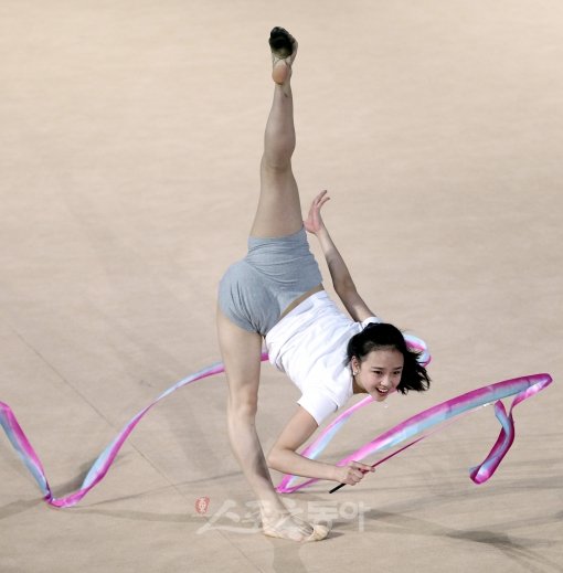 9일 오후 서울 고려대학교 화정체육관에서 진행된 `LG 휘센 리드믹 올스타 2011` 갈라쇼 기자회견에 앞서 가진 포토타임에서 손연재가 화려한 연기를 펼치고 있다.