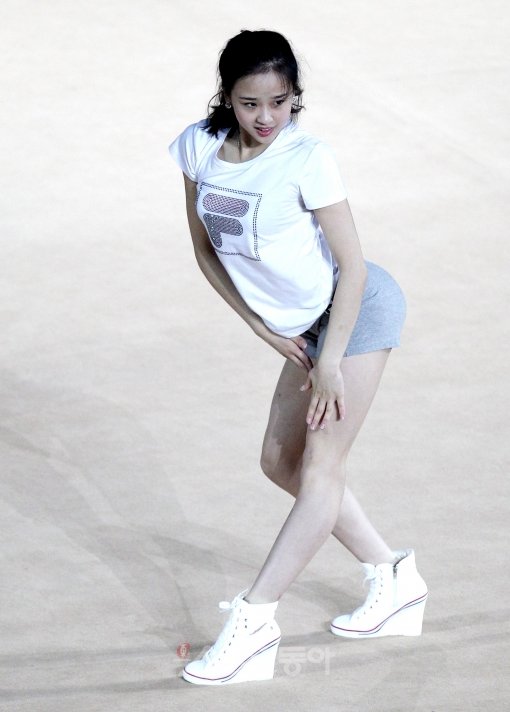 9일 오후 서울 고려대학교 화정체육관에서 진행된 `LG 휘센 리드믹 올스타 2011` 갈라쇼 기자회견에 앞서 가진 포토타임에서 체조선수 손연재가 화려한 연기를 펼치고 있다.