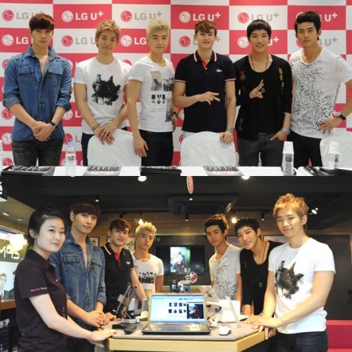 2PM은 LG유플러스 ‘U+ 스퀘어(SQUARE)’ 간판 교체와 매장 새단장을 기념한 행사에 광고모델로서 참석해 팬사인회를 열었다.