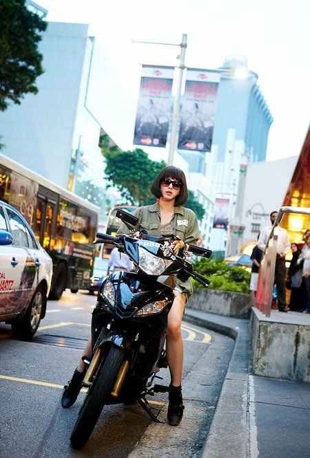 배우 한예슬이 핫팬츠에 오토바이를 타고 있는 사진이 공개돼 시선을 모았다.