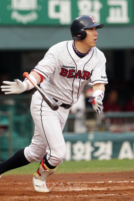 14일 서울 잠실야구장에서 열린 ‘2011 롯데카드 프로야구’ 두산과 넥센의 경기에서 3회말 1사 2루 상황에 김현수가 1타점 적시타를 때려내고 있다.