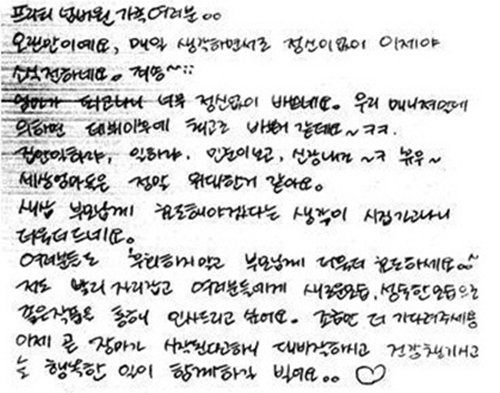 배우 고소영의 자필 편지가 누리꾼들의 관심을 끌고 있다. 고소영은 15일 오후 팬카페 ‘프리티 넘버원’ 게시판에 “엄마가 되고 나니 너무 정신없이 바쁘네요”라고 시작하는 편지를 썼다. 고소영은 편지에서 “매니저 말에 의하면 데뷔 이후 최고로 바쁜 거 같데요”라며 “집안일 하랴, 일하랴, 민준이 보고, 신랑 내조… 휴우”라고 최근 일상을 공개했다. 이어 “세상 엄마들은 정말 위대한 한 것 같아요”라며 “새삼 부모님께 효도해야겠다는 생각이 시집가고 나니 더욱 더 드네요”라고 덧붙였다. 고소영의 편지에 누리꾼들은 “장동건의 아내로 사는 기분이 궁금하다” “스타가 아닌 엄마의 모습이 새롭다”는 반응을 보였다.