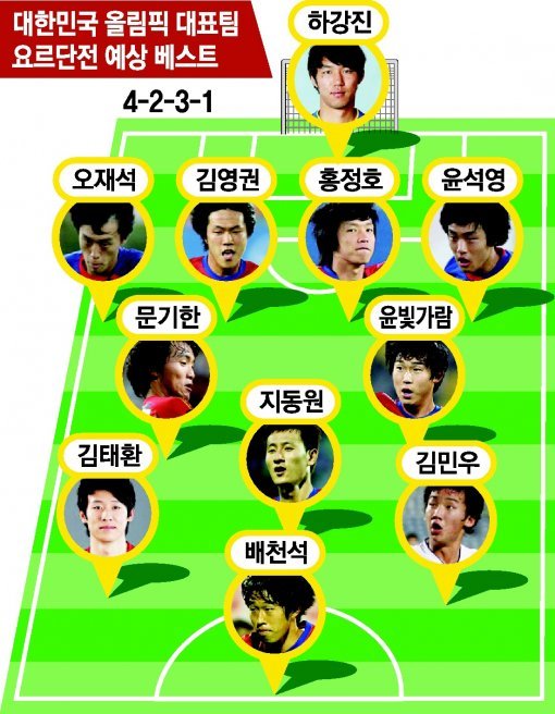 대체자원들이 이들의 공백을 어떻게 메워주느냐에 성패가 달렸다. 구자철의 자리는 윤빛가람(경남) 차지다. 중앙에서 공격을 조율하는 임무를 맡았다. 김보경과 조영철이 있던 좌우 측면은 홍 감독의 원조 황태자 김민우(사간도스)와 1일 오만과 평가전에서 2도움을 올린 김태환(서울)이 맡는다.