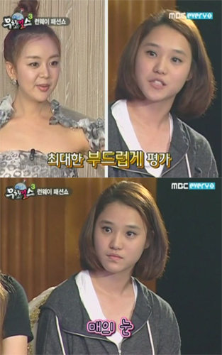 18일 한 포털 사이트 게시판에 ‘백보람보다 더 우월한 백보람 코디’라는 제목으로 사진이 게재됐다. 이는 지난 16일 방송된 MBC 에브리원 ‘무한걸스 시즌 3-무한걸스 프로젝트 런웨이’의 방송 캡처 화면.