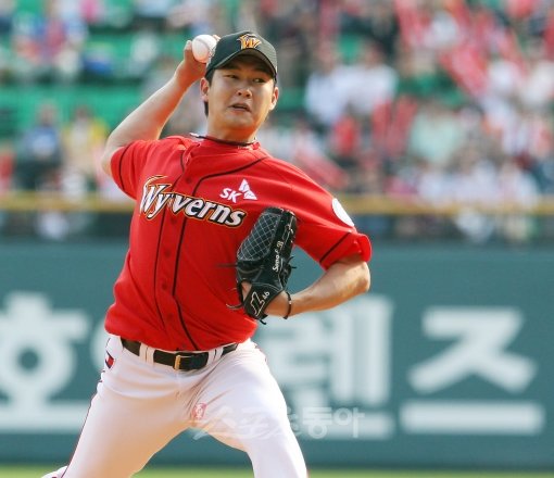 19일 서울 잠실야구장에서 열린 프로야구 SK 와이번스와 LG 트윈스의 경기에서 SK 선발 투수 송은범이 역투하고 있다.
