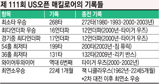 매킬로이는 이번 대회에서 16언더파 268타로 우승했는데 이는 US오픈 사상 최소타, 최다 언더파 우승이다.