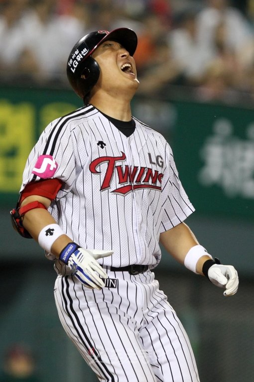 21일 서울 잠실야구장에서 열린 프로야구 넥센 히어로즈와 LG 트윈스의 경기에서 6회말 1사 만루 상황에서 LG 이진영이 플라이 아웃되자 아쉬워하고 있다.