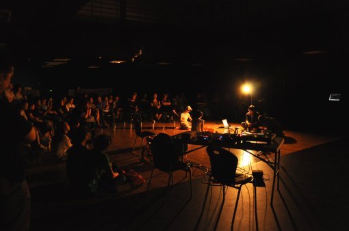 서울시창작공간 문래예술공장 공연장에서 ‘문래 레저넌스’ 강사와 참가자들이 다양한 소리로 구성된 사운드 아트 공연을 하고 있다.