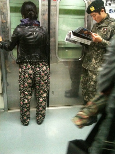 군복무 중인 힙합그룹 에픽하이 DJ투컷(사진 오른쪽)의 사진이 공개됐다. 최근 여러 포털사이트 게시판에는 군복 입은 DJ투컷이 지하철에서 잡지를 보는 사진이 ‘휴가 나온 군인이 지하철에서 기대고 서서 잡지 보네요’라는 제목으로 올라왔다. DJ투컷은 베레모를 쓰고 전동차 문 옆 기둥에 기대서서 잡지를 읽고 있고, 다른 탑승객들은 DJ투컷의 존재를 알지 못하는 풍경이다.