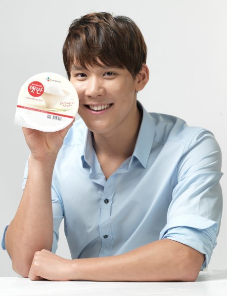 ‘햇반’의 광고모델이자 실제로도 ‘햇반’마니아로 알려진 수영스타 박태환이 ‘햇반’을 들고 포즈를 취하고 있다.