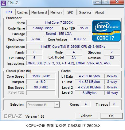 PC를 구성하는 다양한 부품 중에서 PC 성능을 좌우하는 것은 바로 마이크로 프로세서(이하 CPU)이다. C342는 현존하는 CPU 중에서 다섯 손가락 안에 드는 최상급 CPU인 i7 2600k를 탑재했다는 점이 돋보이는 제품이다.