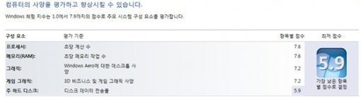 윈도우 도움말을 참고하면, 각 요소 최고점이 7.9점인 이 체험 지수는 업무용 PC가 대개 2.0점 대, 윈도우7를 무리 없이 사용 가능한 정도가 5.0점 대, 3D게임과 HD 영상 재생 등 다양한 고사양 기능을 사용할 수 있는 수준이 7.0점 대라고 한다.